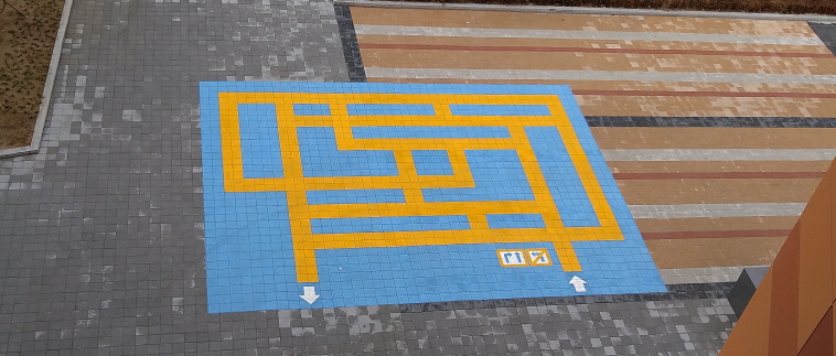 바닥에 연출된 좌회전 금지 미로를 따라 이동하여 미로를 탈출하는 체험을 한다.