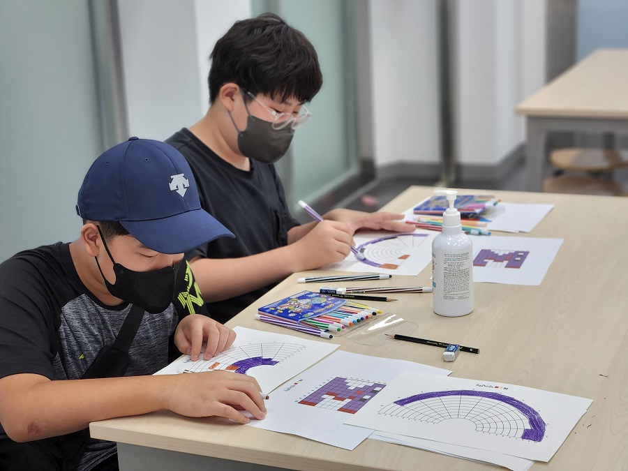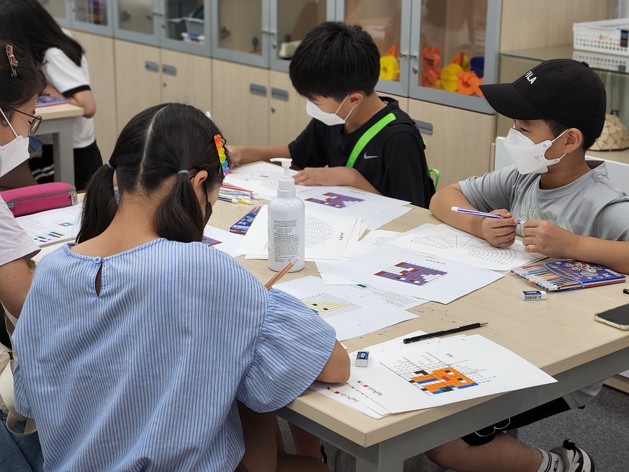 2022년 여름방학 기념 프로그램 "수학아, 놀자!"의 네 번째 코너 「트라이 컬러로직」의 활동 사진 입니다.