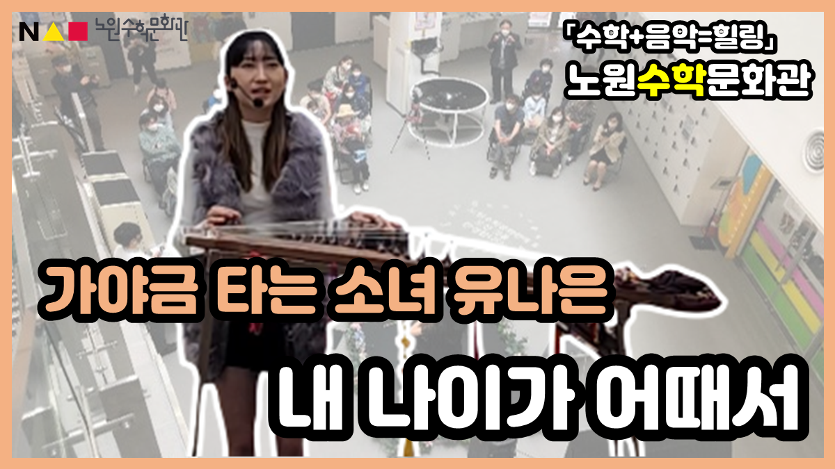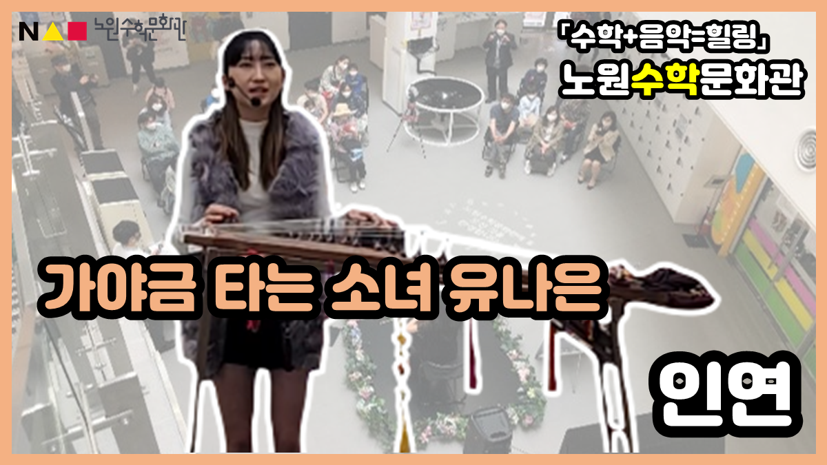 노원수학문화관 9월 「수학+음악=힐링」 공연 영상입니다. 공연자 : 가야금 타는 소녀 유나은 공연일 : 2022년 9월 25일 ※ 바로 영상 시청하기 기능은 홈페이지 보안 정책에 따라 지원하지 않습니다. 유튜브 바로가기 → https://youtu.be/WuYhfkn9DuU