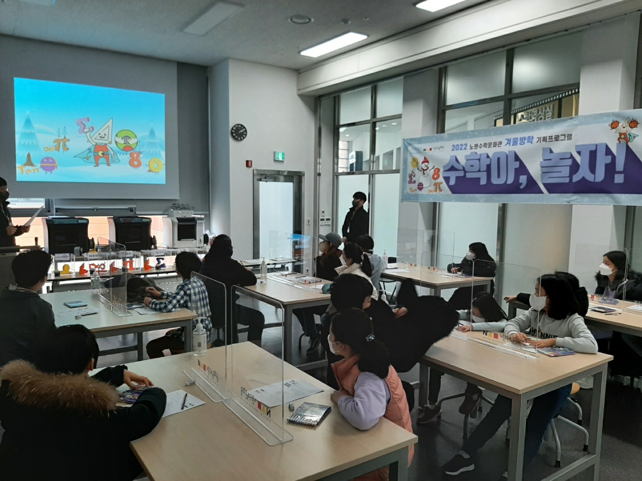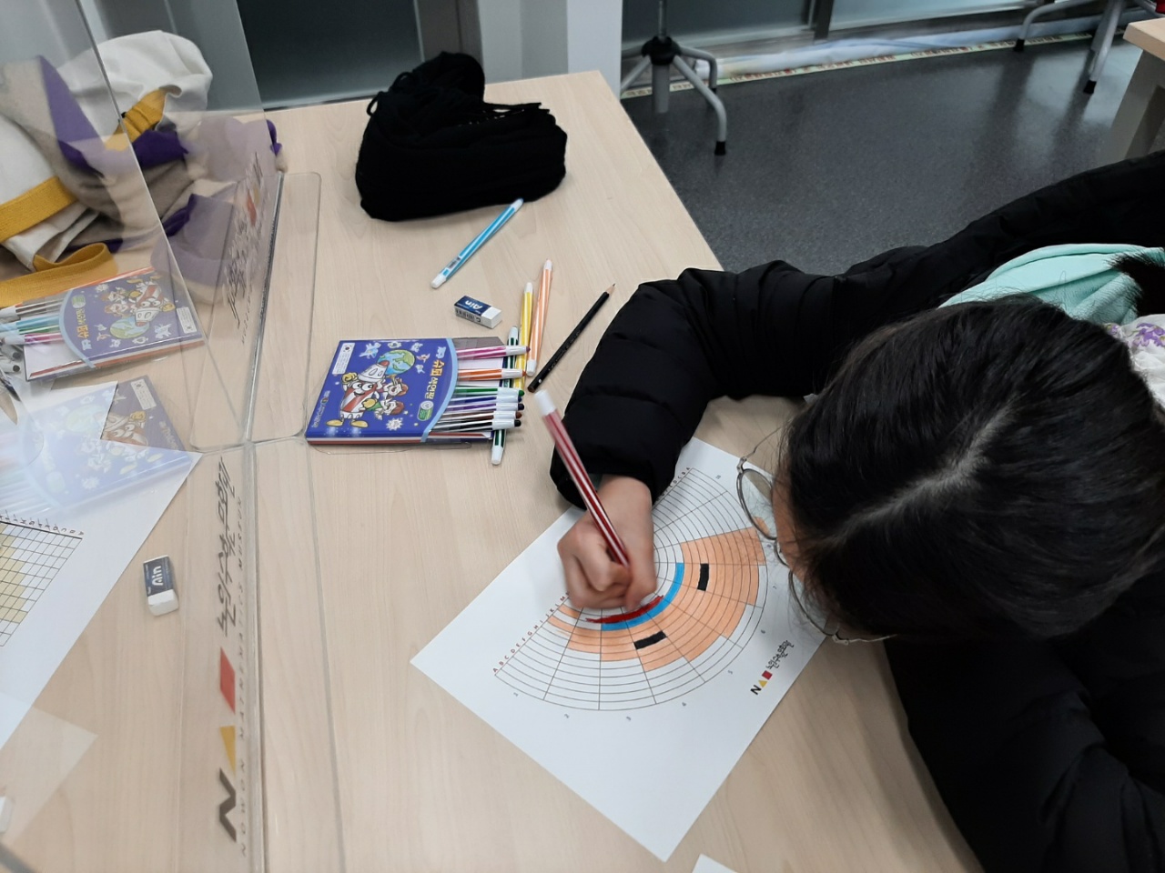 2022년 겨울방학 기념 프로그램 "수학아, 놀자!"의 두 번째 코너 「트라이 컬러로직」의 활동 사진 입니다.