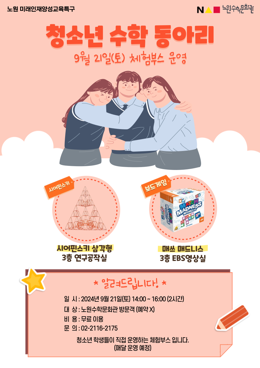 노원수학문화관 청소년수학동아리가 주최하는 9월 체험부스