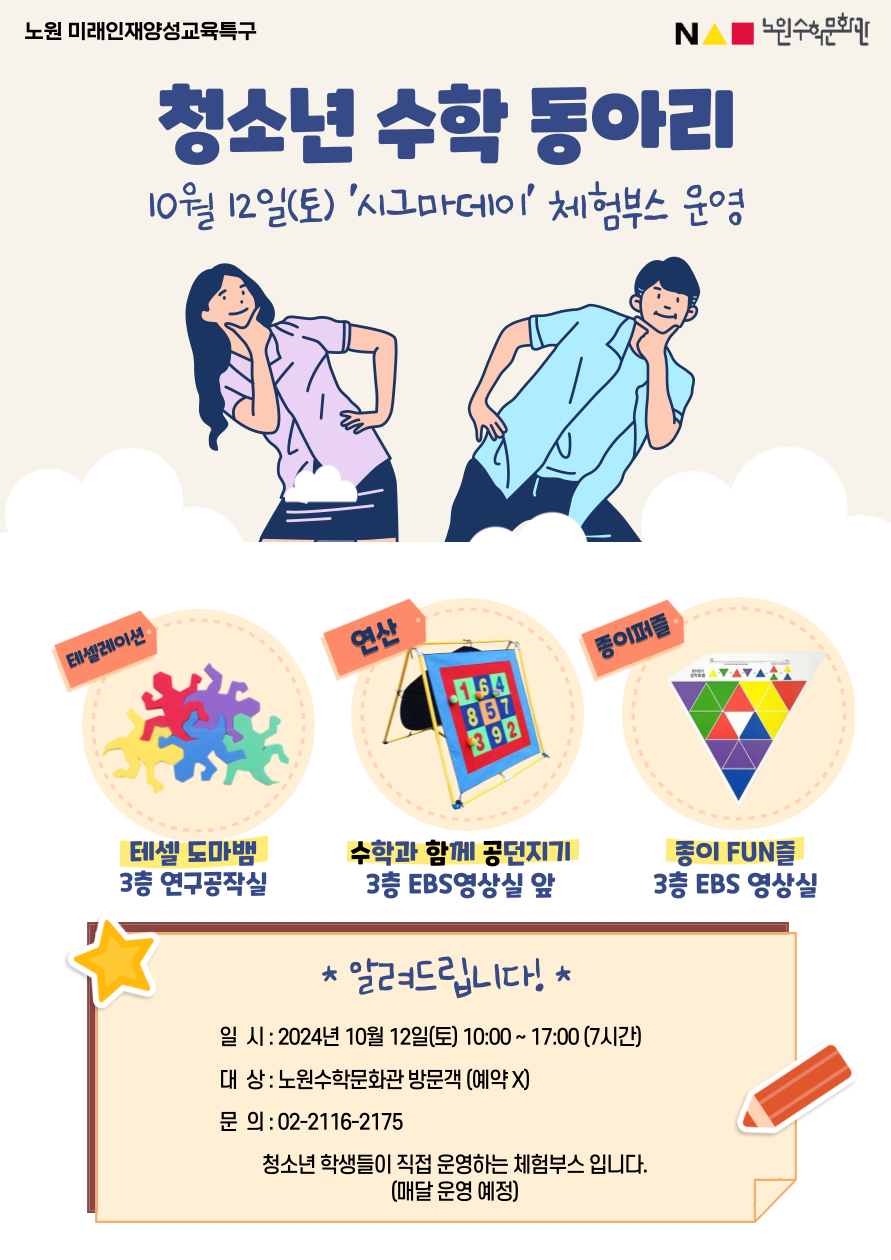 문의 : 노원수학문화관 교육팀 02-2116-2175