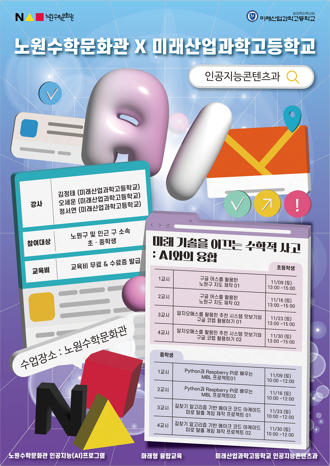 노원수학문화관x미래산업과학고등학교「코딩 프로그램」안내