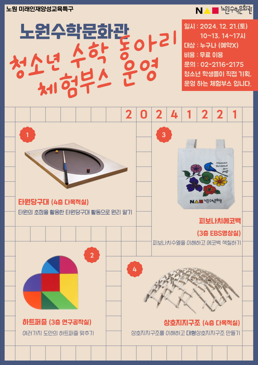 문의 : 노원수학문화관 교육팀 02-2116-2175