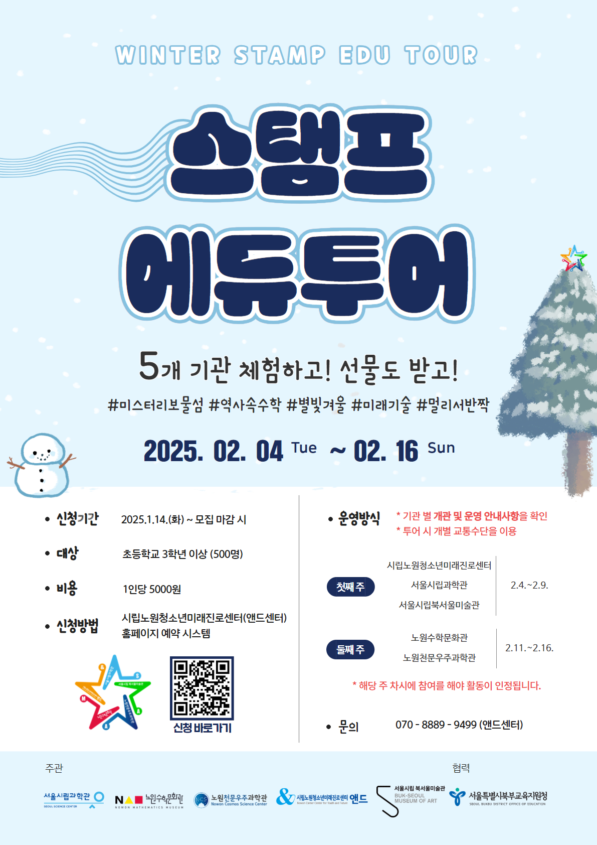 노원구의 5개 기관이 함께하는 2025 겨울방학 '스탬프 에듀투어'
