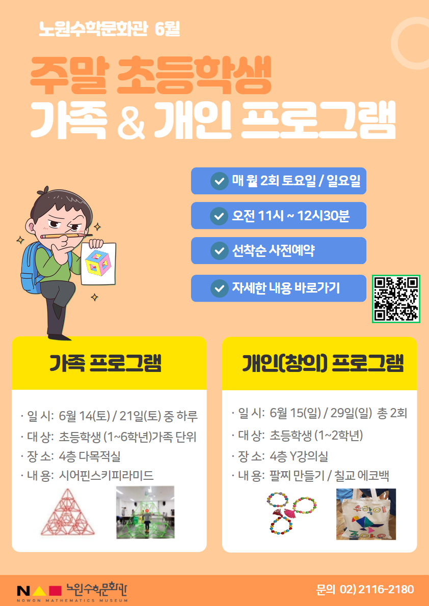 ※ 재료비는 노원수학문화관 관람료와 별도이며 환불 불가함. (노원구 주민 무료 입장/ 타구 주민 유료 입장)