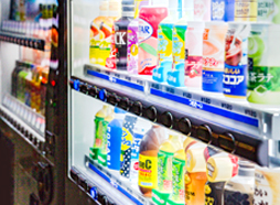 본동 1층에 있는 자판기입니다. 간단한 스낵과 음료, 칫솔, 면도기 등을 판매합니다.