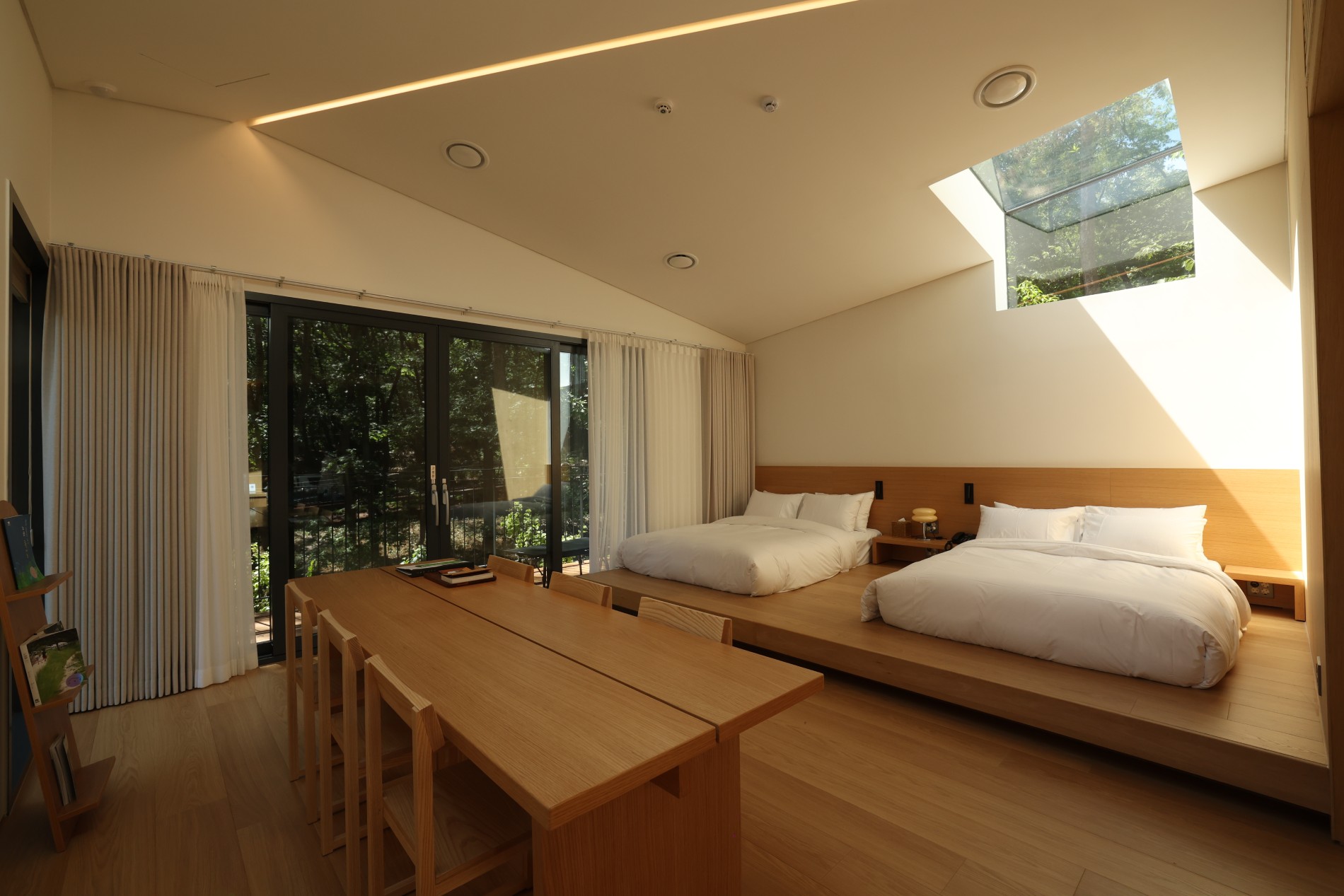 침대(더블)*2개,테이블, 미니바, 드라이기, 커피포트, 컵, 턴테이블, 블루투스 스피커, LP, 도서, Wi-Fi, 테라스 테이블 및 의자