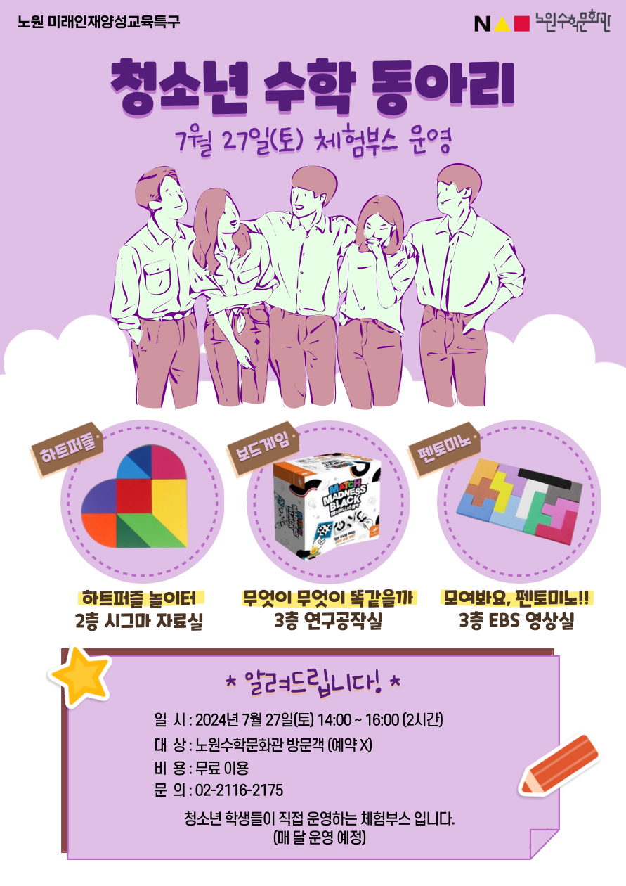 노원수학문화관 청소년수학동아리가 주최하는 7월 체험부스