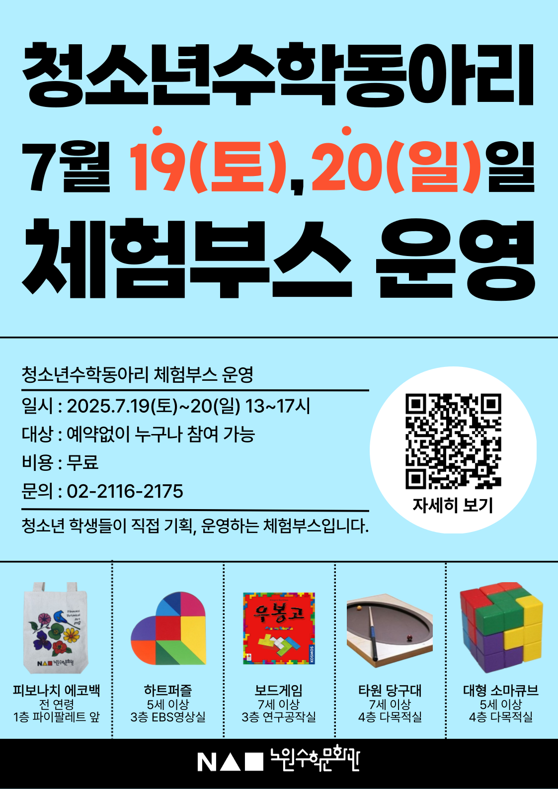 노원수학문화관 청소년수학동아리가 주최하는 7월 체험부스