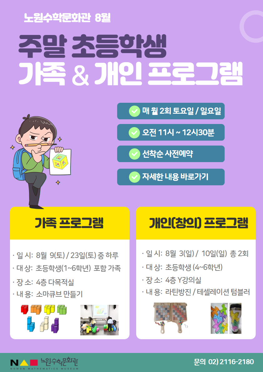 ※ 재료비는 노원수학문화관 관람료와 별도이며 환불 불가함. (노원구 주민 무료 입장/ 타구 주민 유료 입장)