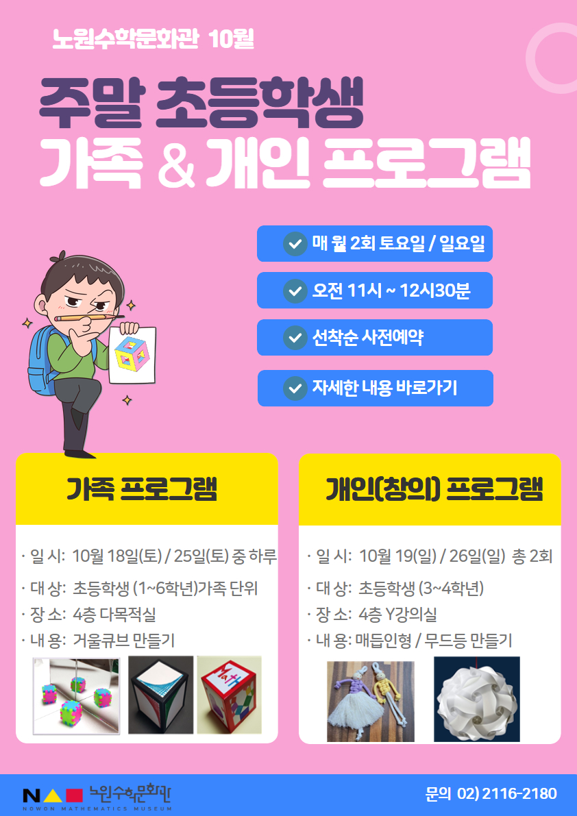 ■ 재료비 : 9,000원 (*재료비는 노원수학문화관 관람료와 별도입니다.)