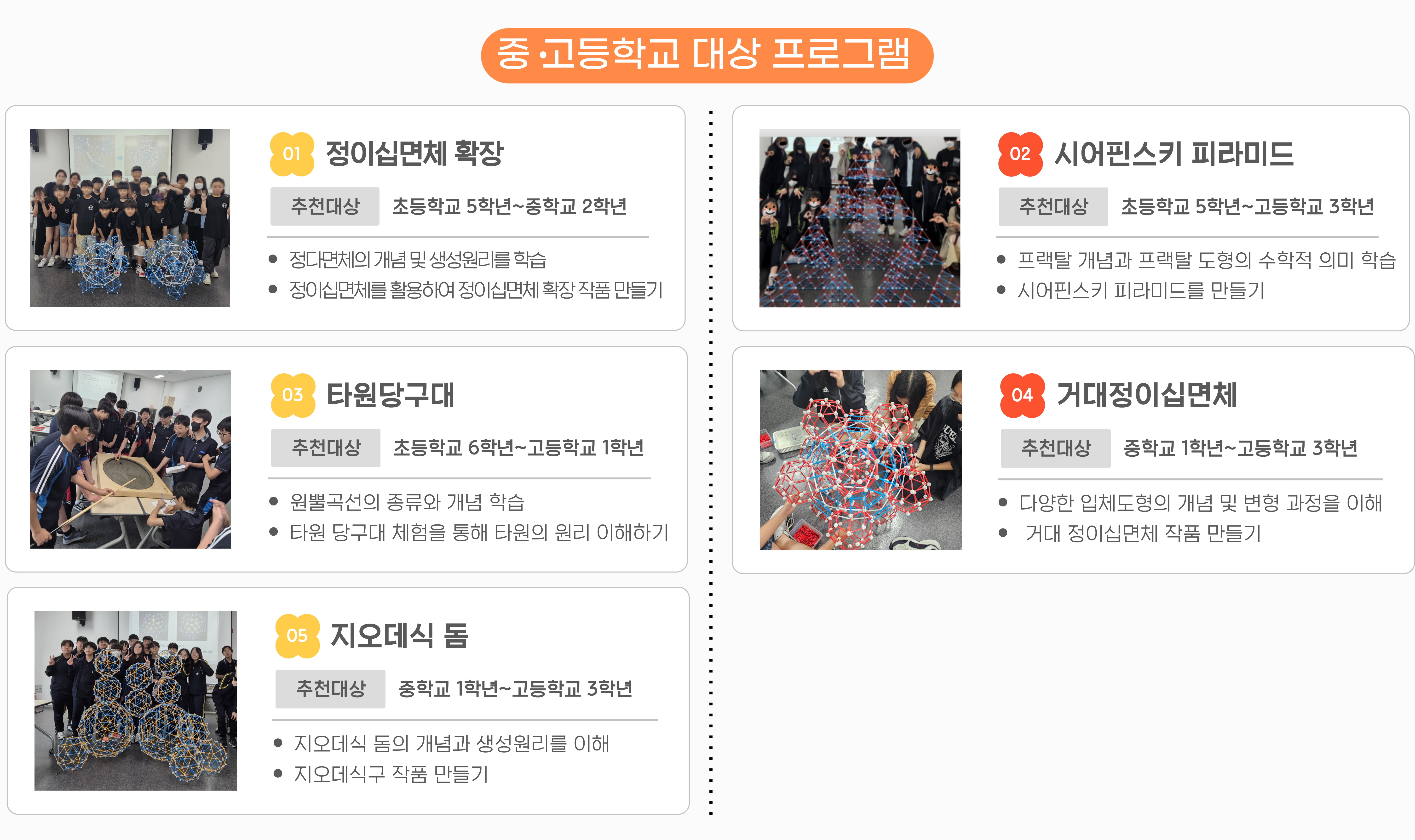 ※ 운영 요일 및 시간은 노원수학문화관 및 학교 일정에 따라 사전 협의 후 조율가능 (예약시 유선 문의 필수)