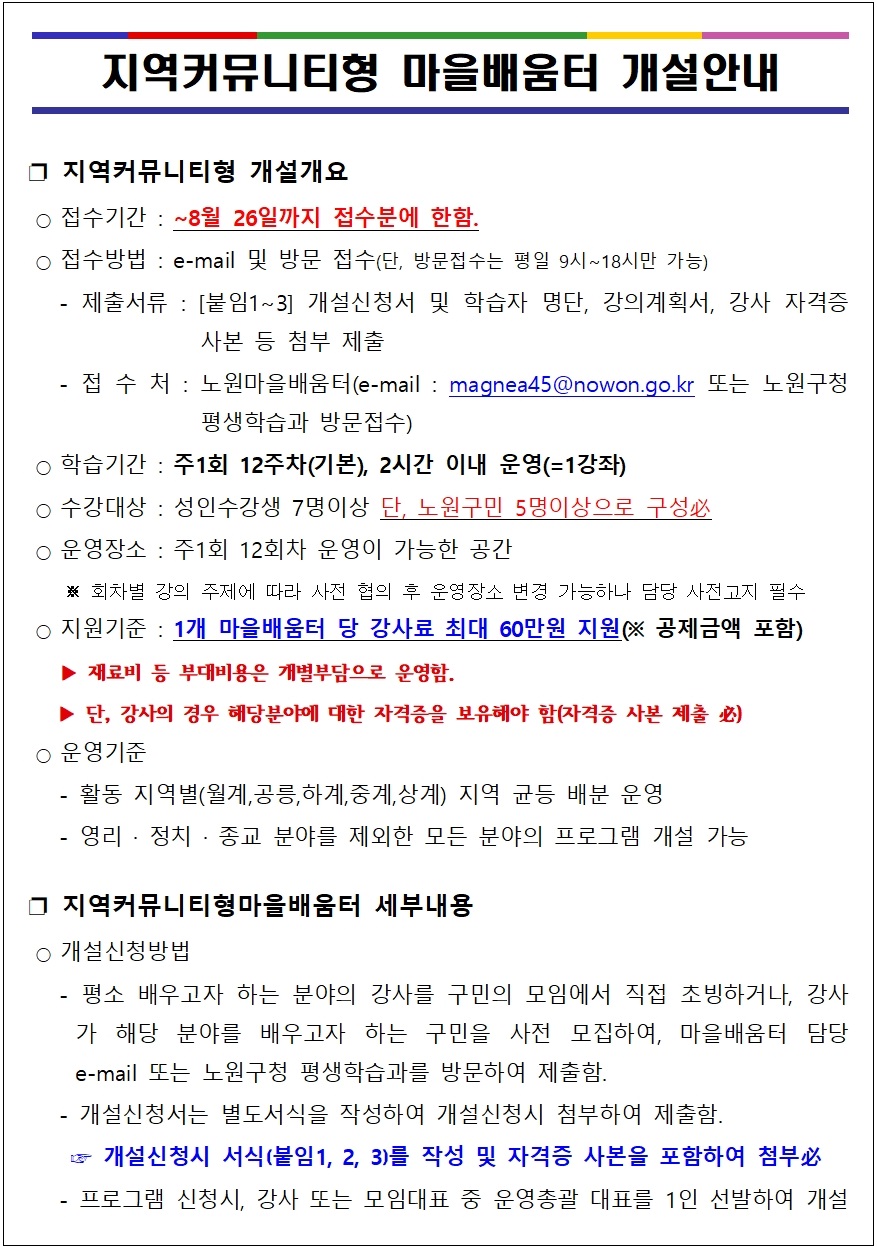 2022. 9월 지역커뮤니티형 마을배움터 개설신청 첨부서류 안내
