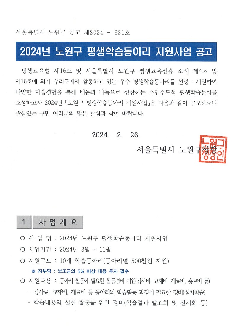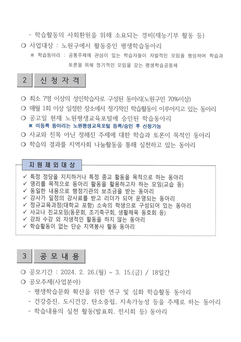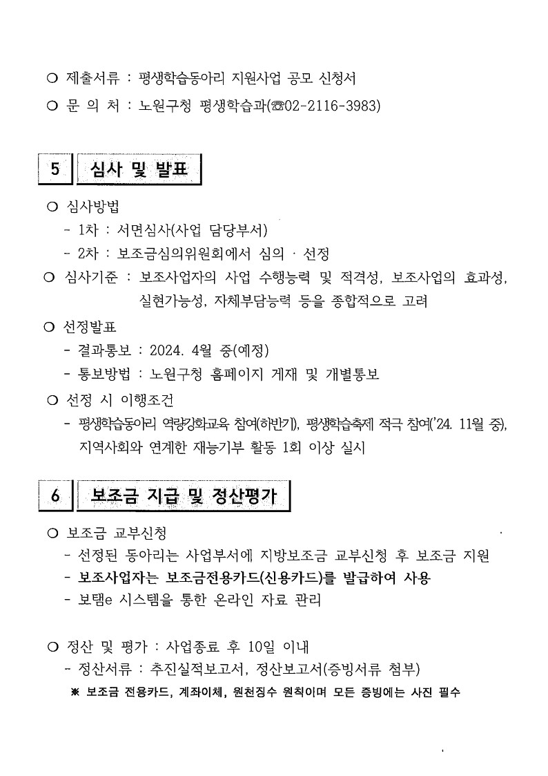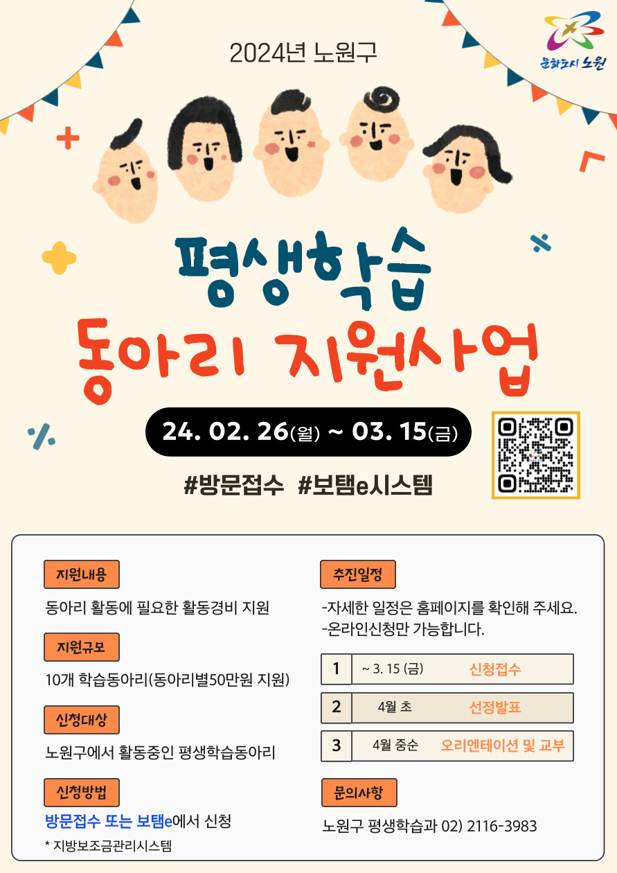 [전체공지] [방문접수 가능] 노원구 평생학습동아리 지원사업 안내 **방문접수 또는 지방보조금관리시스템에서 신청**