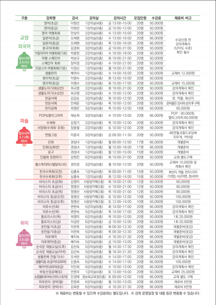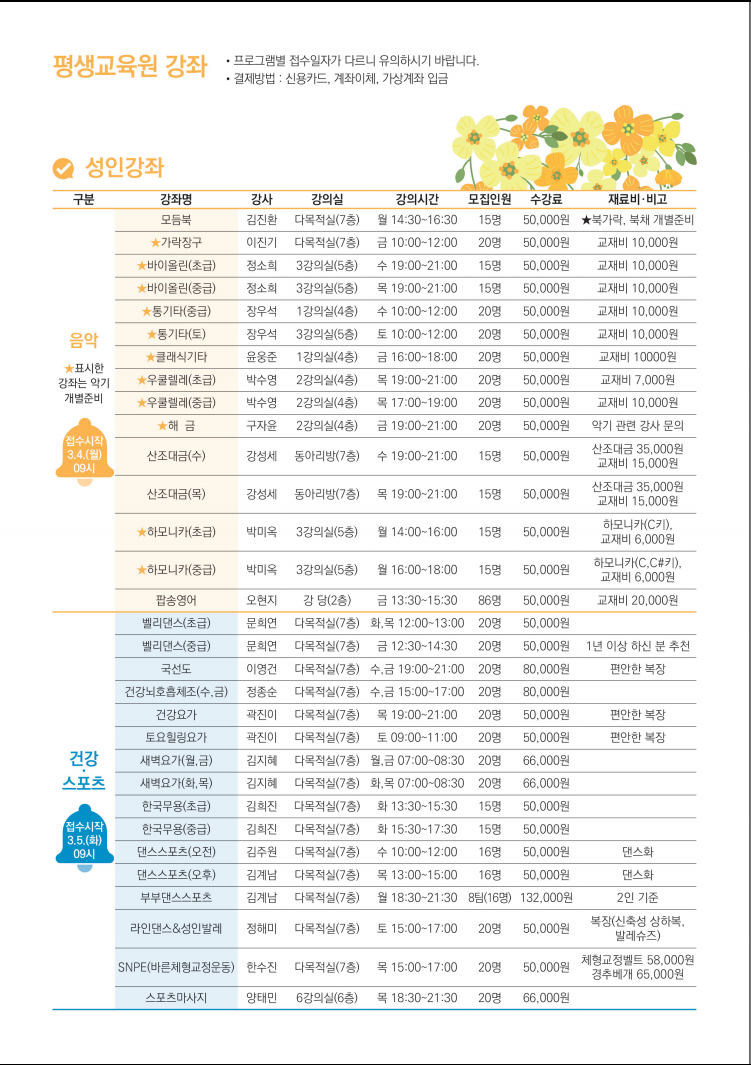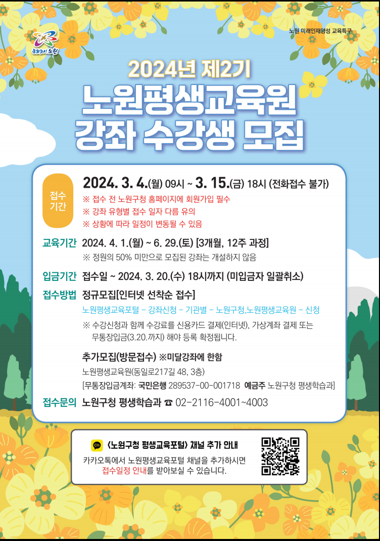 [공릉평생교육원] 2024년 2분기 수강생 모집 안내