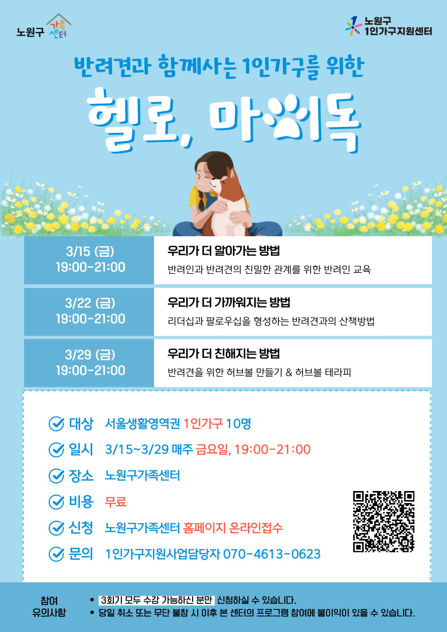 [전체공지] [노원구가족센터] 헬로, 마이독(반려견을 키우는 반려인 교육)