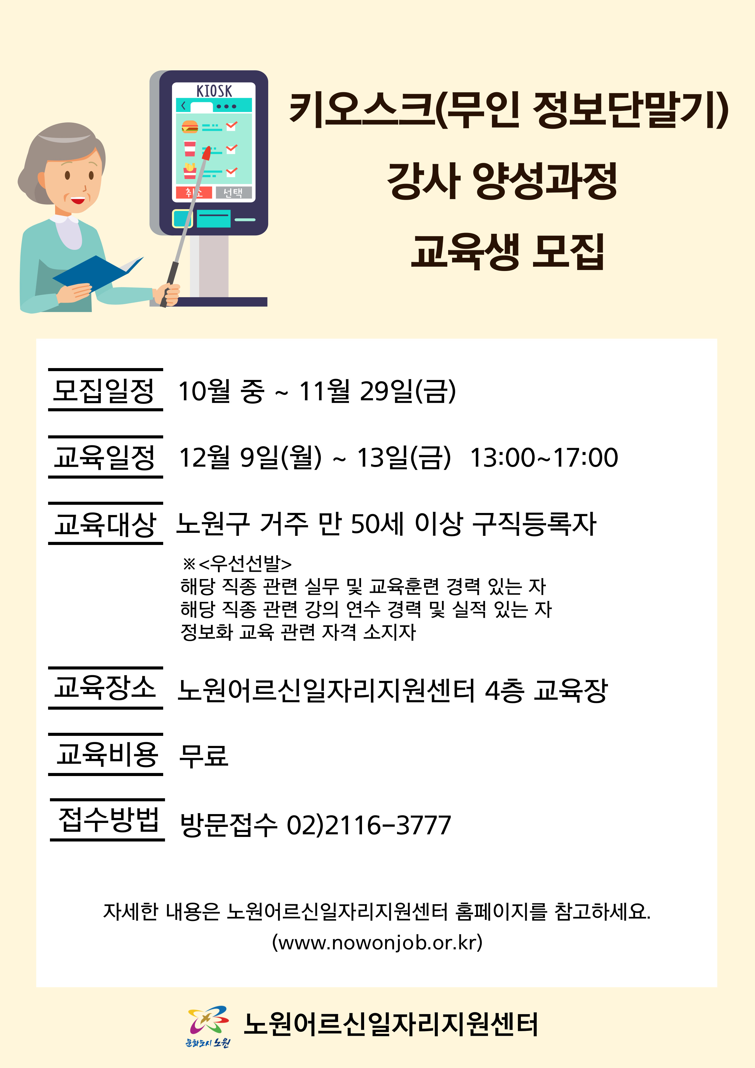 [전체공지] 키오스크(무인 정보단말기)강사 양성 과정 교육생 모집 [노원어르신일자리지원센터]
