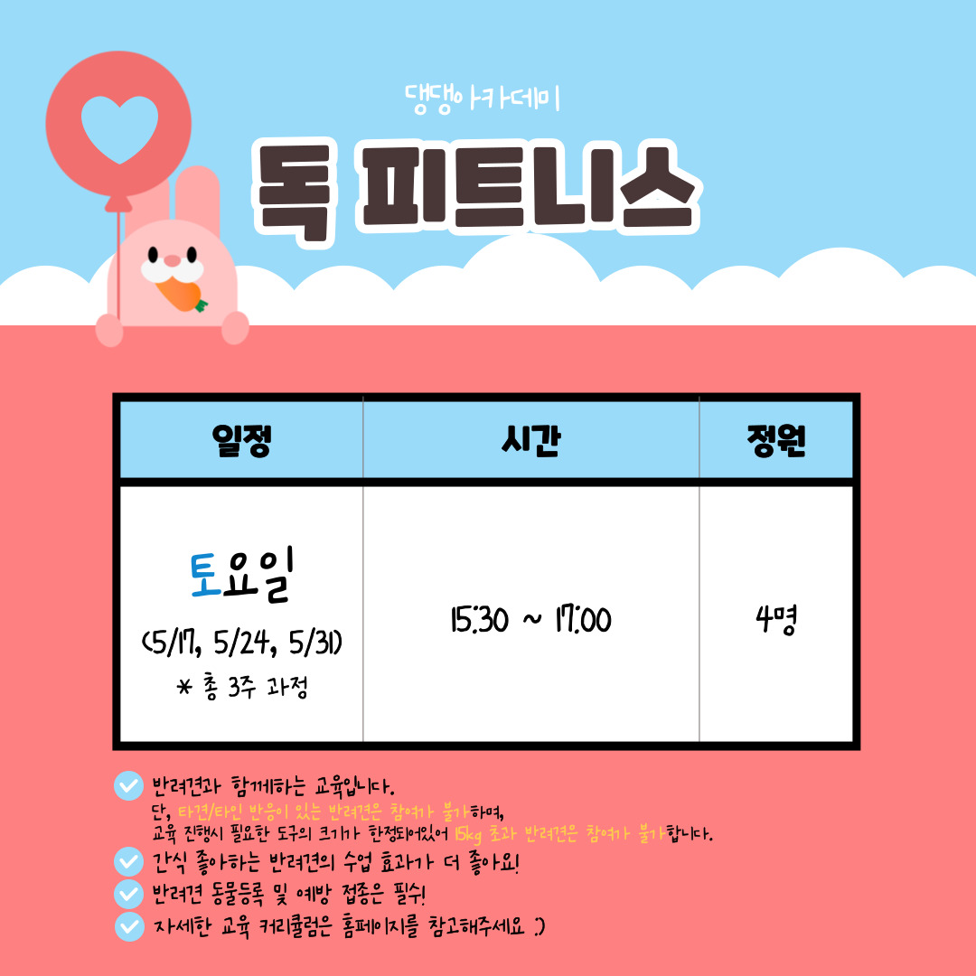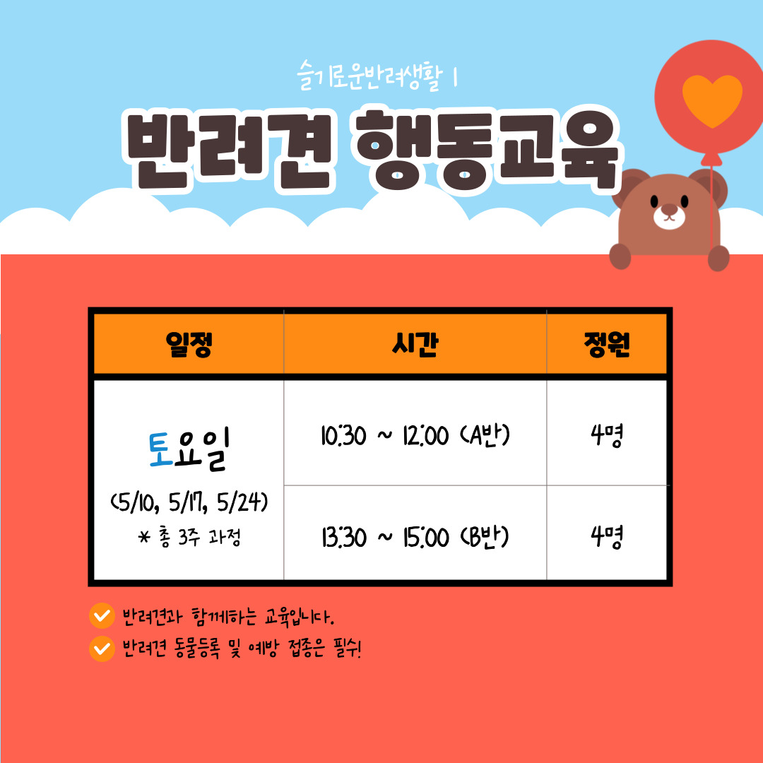 [전체공지] ★노원 반려동물문화센터「힐링하시개!댕댕하우스」5월 교육신청 안내★