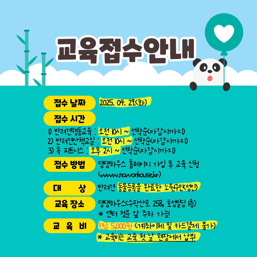 노원 반려가족 여러분들을 위한 2025년 댕댕하우스 5월 교육 안내드립니다.