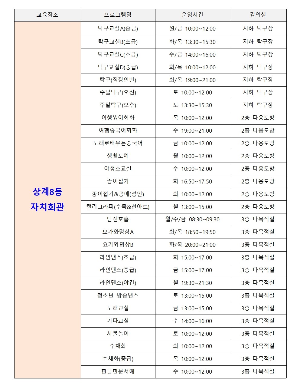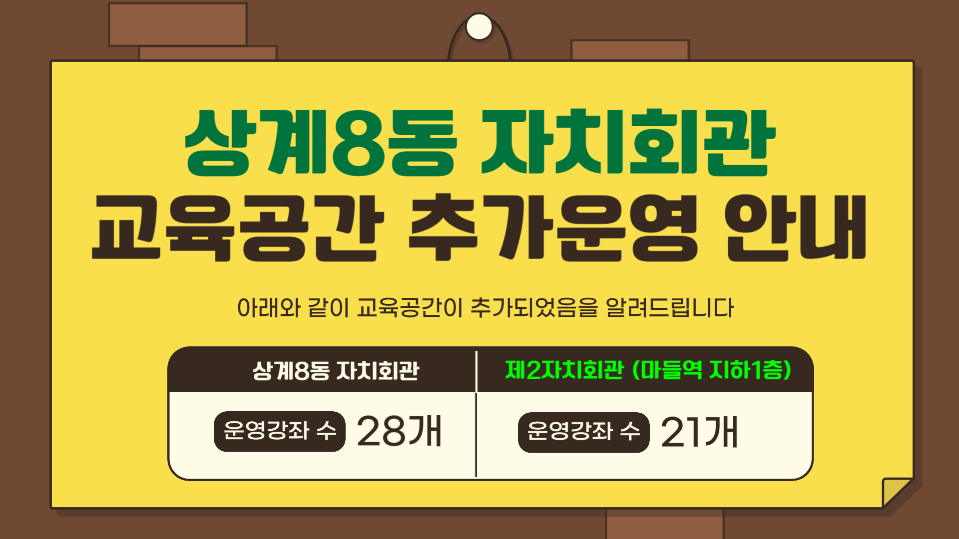 [전체공지] 상계8동 자치회관 교육공간 추가 운영 안내