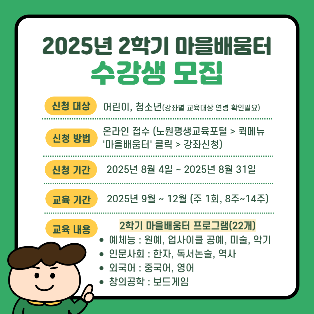 [마을배움터 ] [2025년 2학기 마을배움터 선정 심의 결과 안내(하반기)]