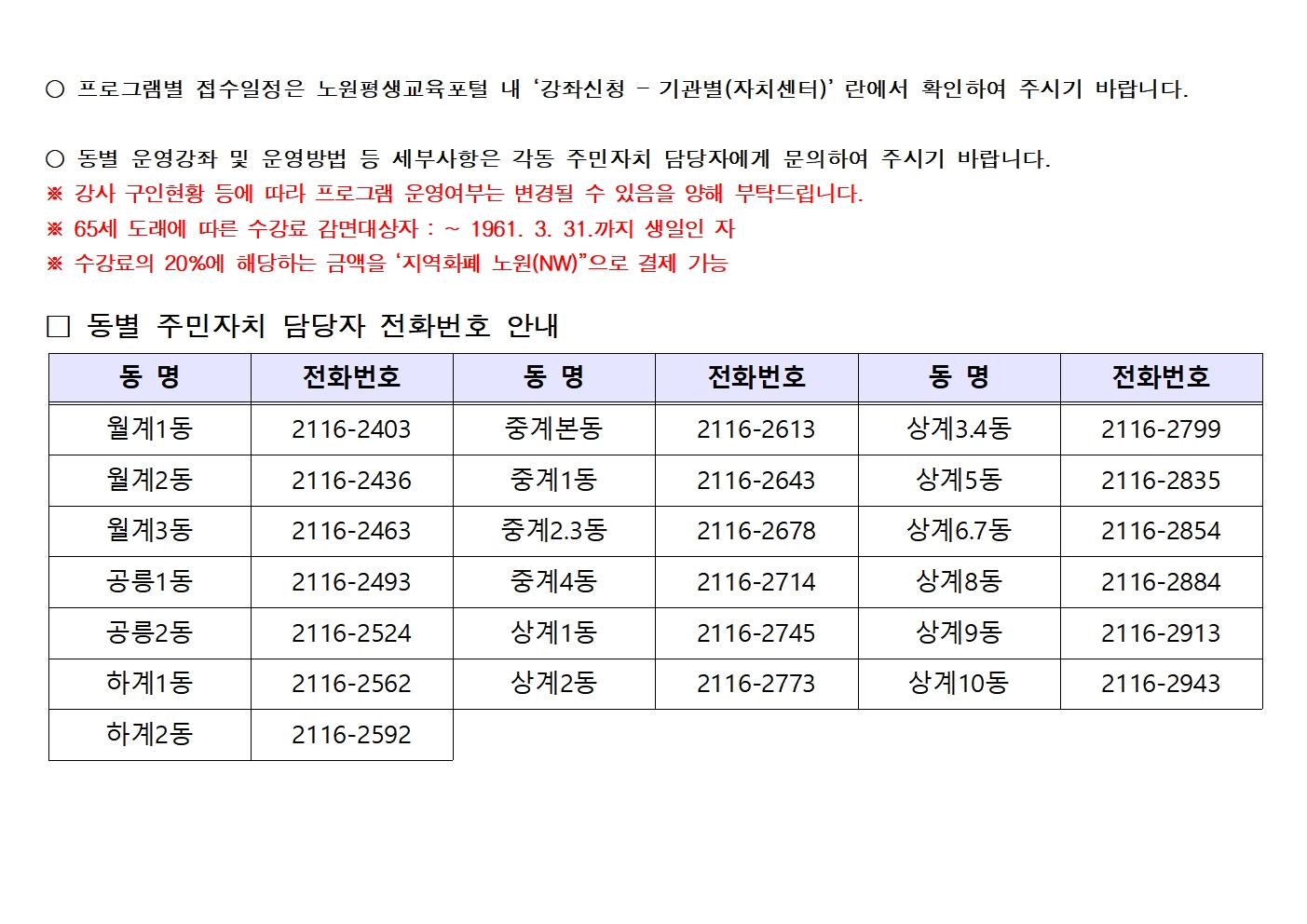 2026년 2분기 자치회관 프로그램 접수일정 안내