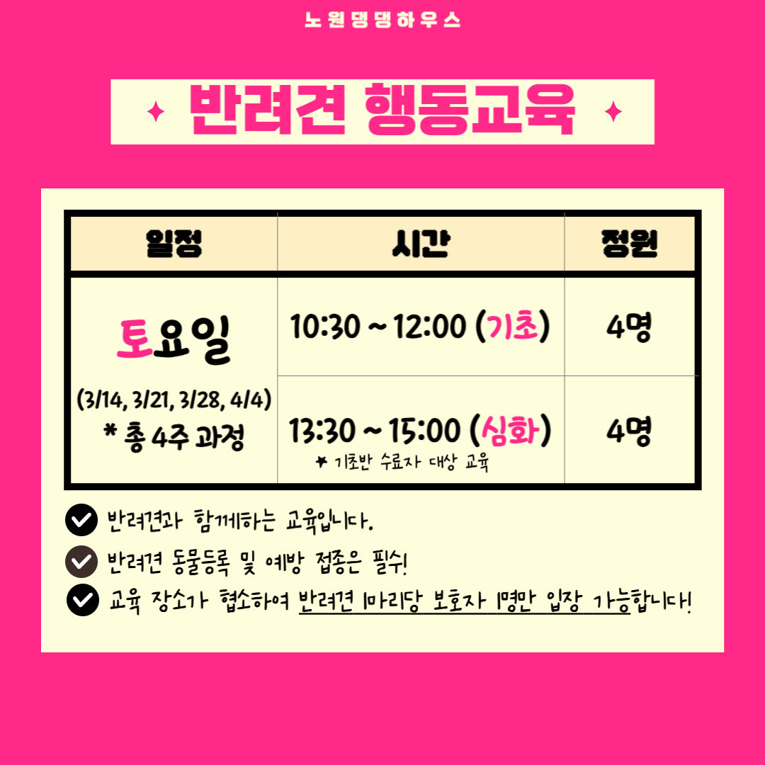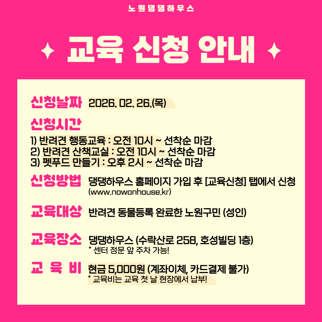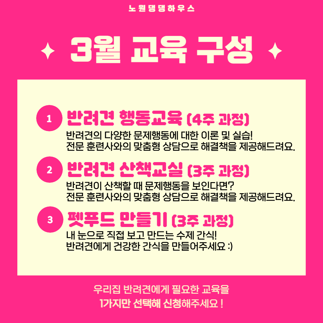 노원 반려가족 여러분들을 위한 2026년 댕댕하우스 3월 교육 안내드립니다.