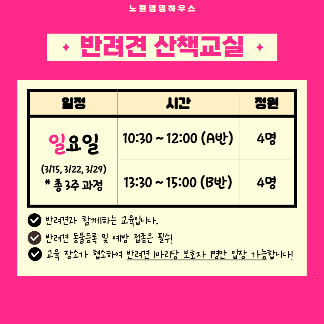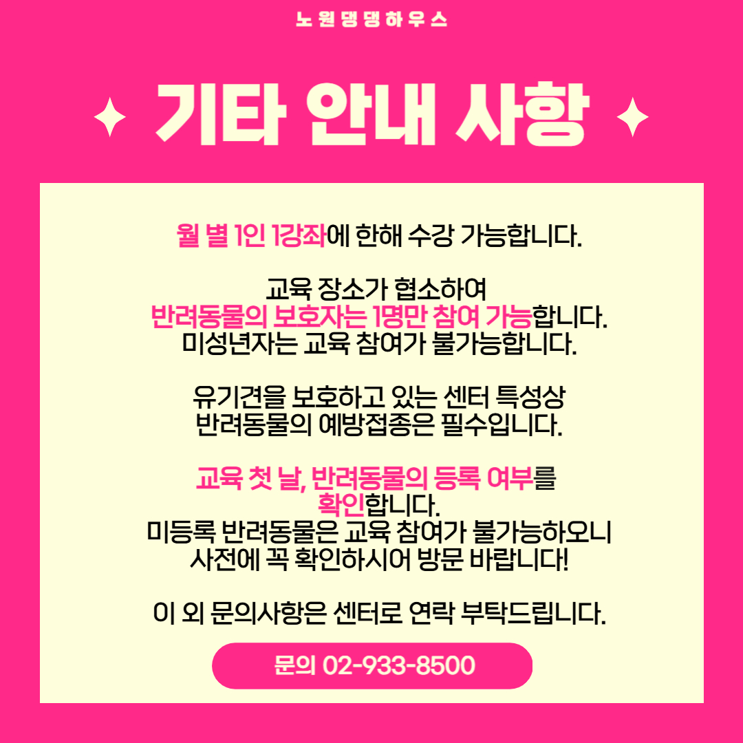 [전체공지] ★노원 반려동물문화센터「힐링하시개!댕댕하우스」3월 교육신청 안내★