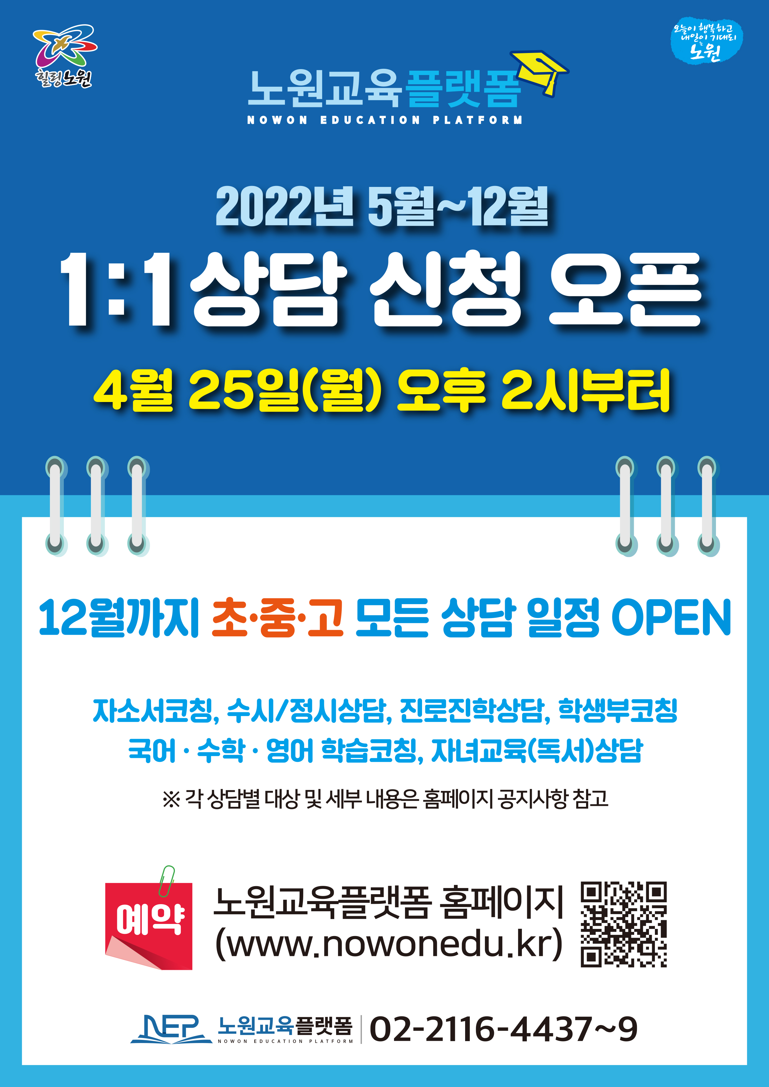 노원교육플랫폼 2022년 5~12월 1:1 상담 신청 안내