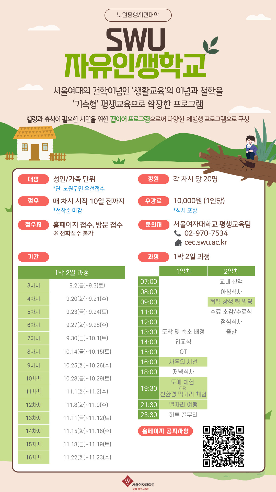 평생시민대학 SWU 자유인생학교 신청 안내