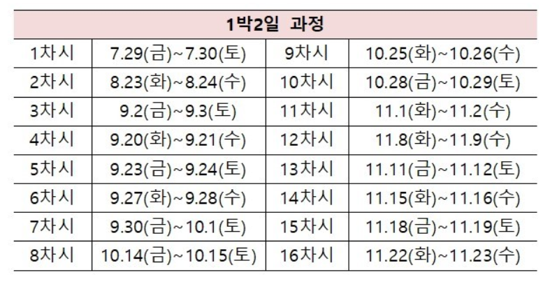 1. 과정별 기간 안내