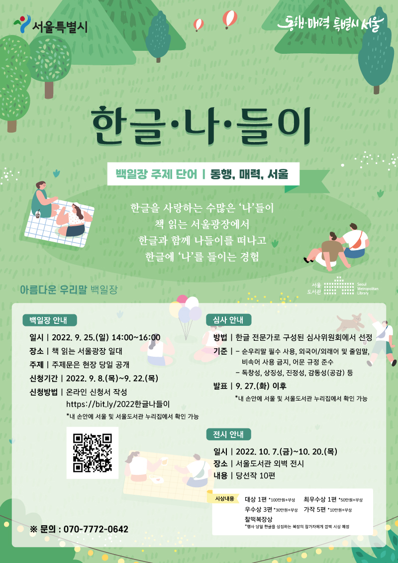 [서울시] 2022 한글날 기념 아름다운 우리말 백일장 <한글. 나. 들이>