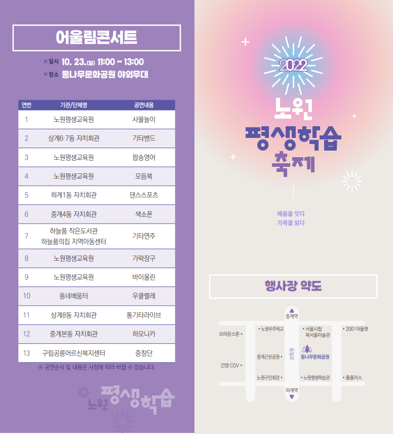 노원평생학습축제 - 10월 23일 일요일