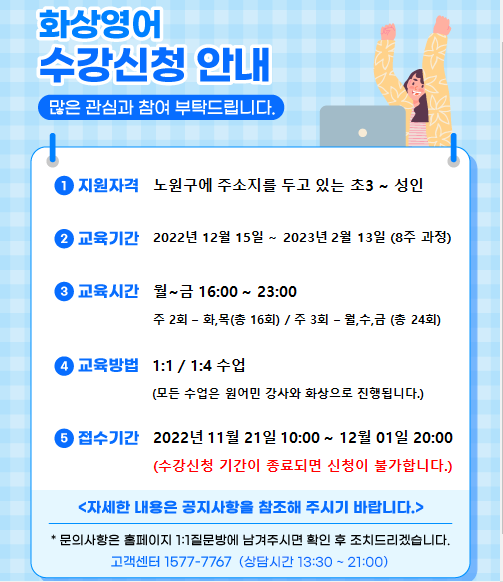 [전체공지] 노원구 화상영어학습센터 - 2023년 1기 화상영어 수강모집 안내