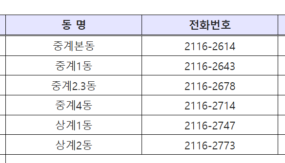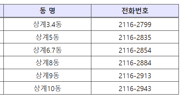□ 동별 주민자치 담당자 전화번호 안내