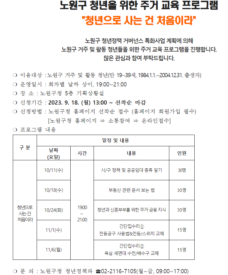 노원구 청년을 위한 주거교육