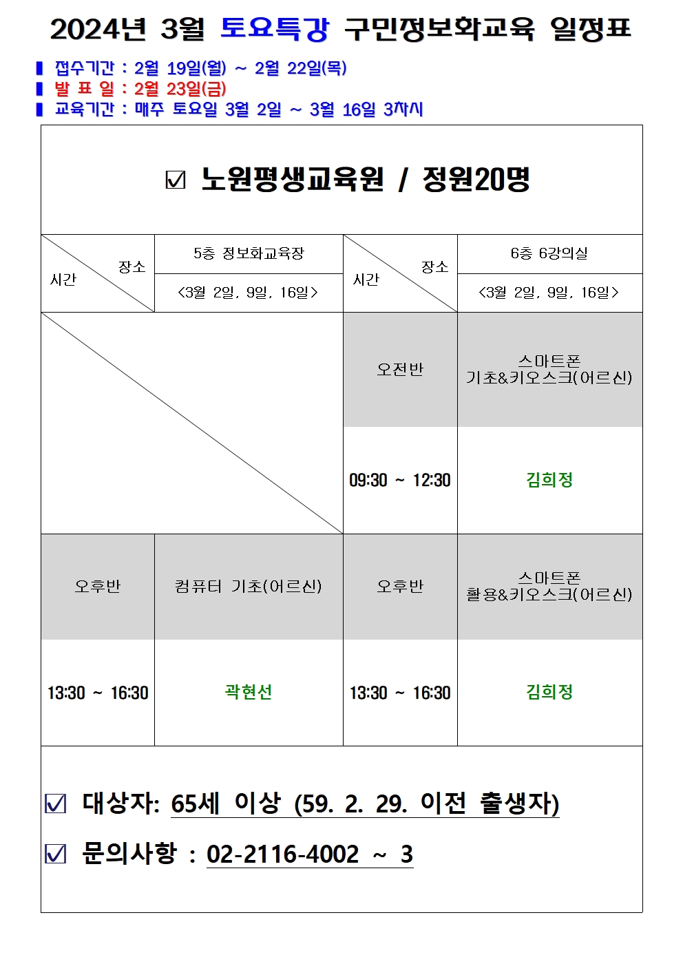 [구민정보화교육] 2024년 3월 구민정보화교육 일정표