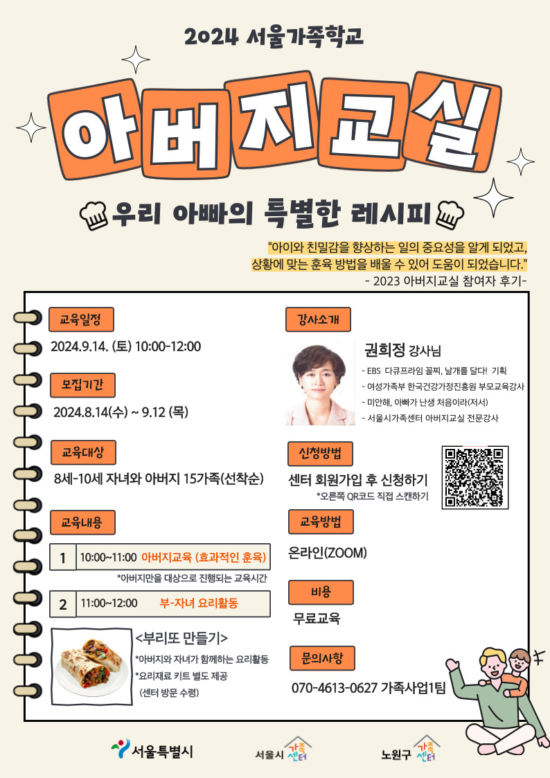 [공릉동] [노원구가족센터] 아버지교실 "우리 아빠의 특별한 레시피" 참여자모집