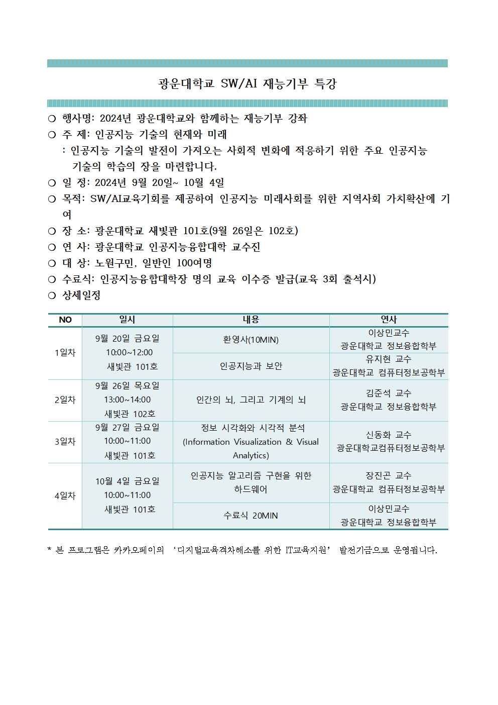 [월계동] 광운대학교와 함께하는 [인공지능 기술의 현재와 미래] 수강생 모집