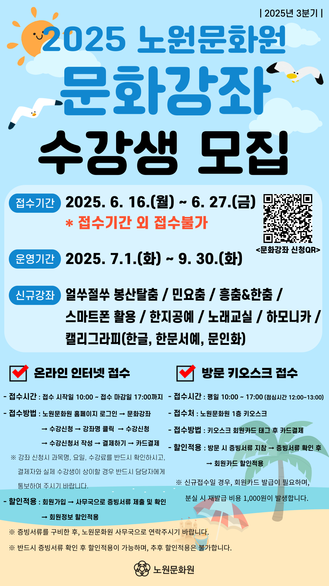 <2025 3분기 노원문화원 문화강좌 수강생 모집>