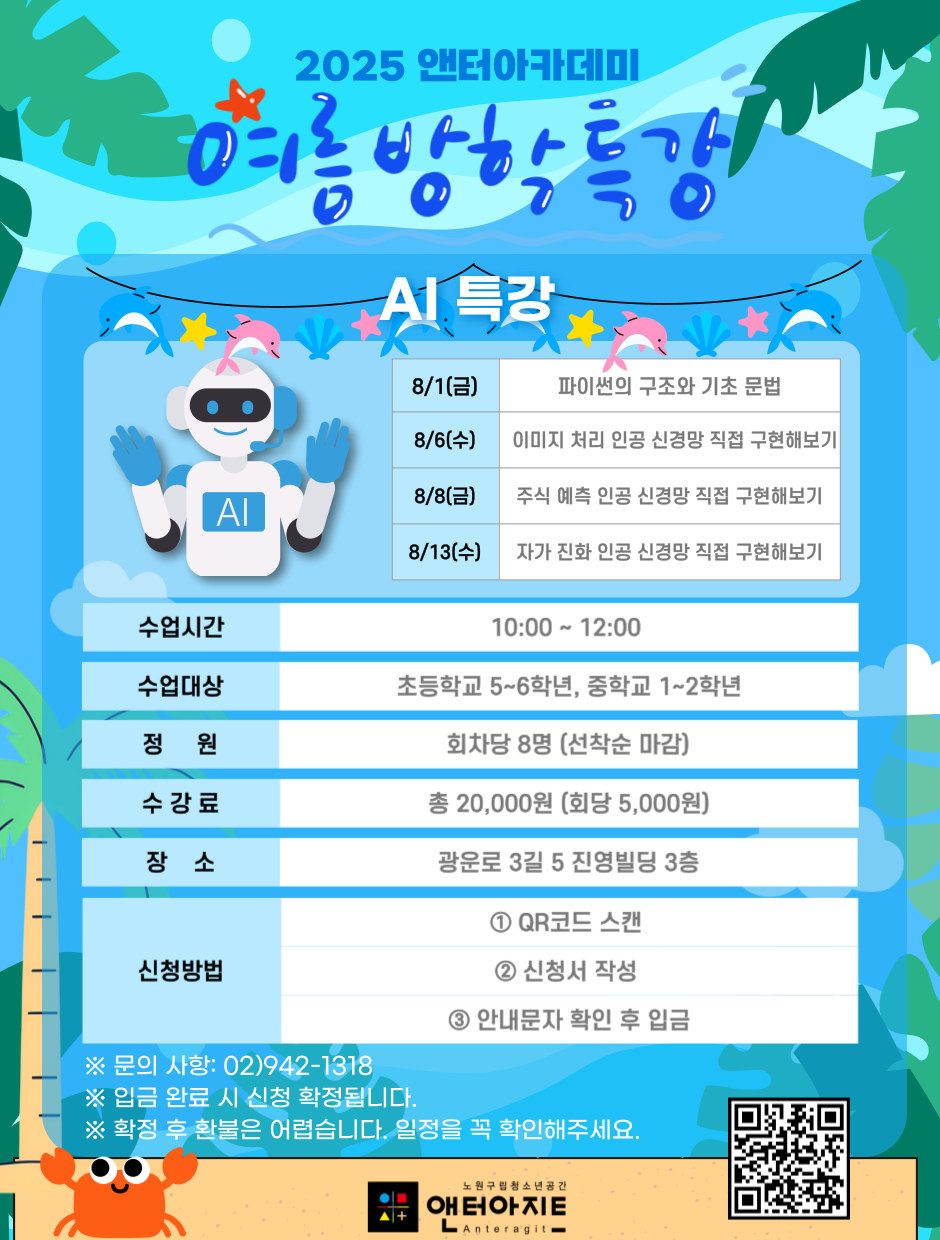 [노원구] [노원구립앤터아지트] 2025 여름방학 코딩 특강 안내