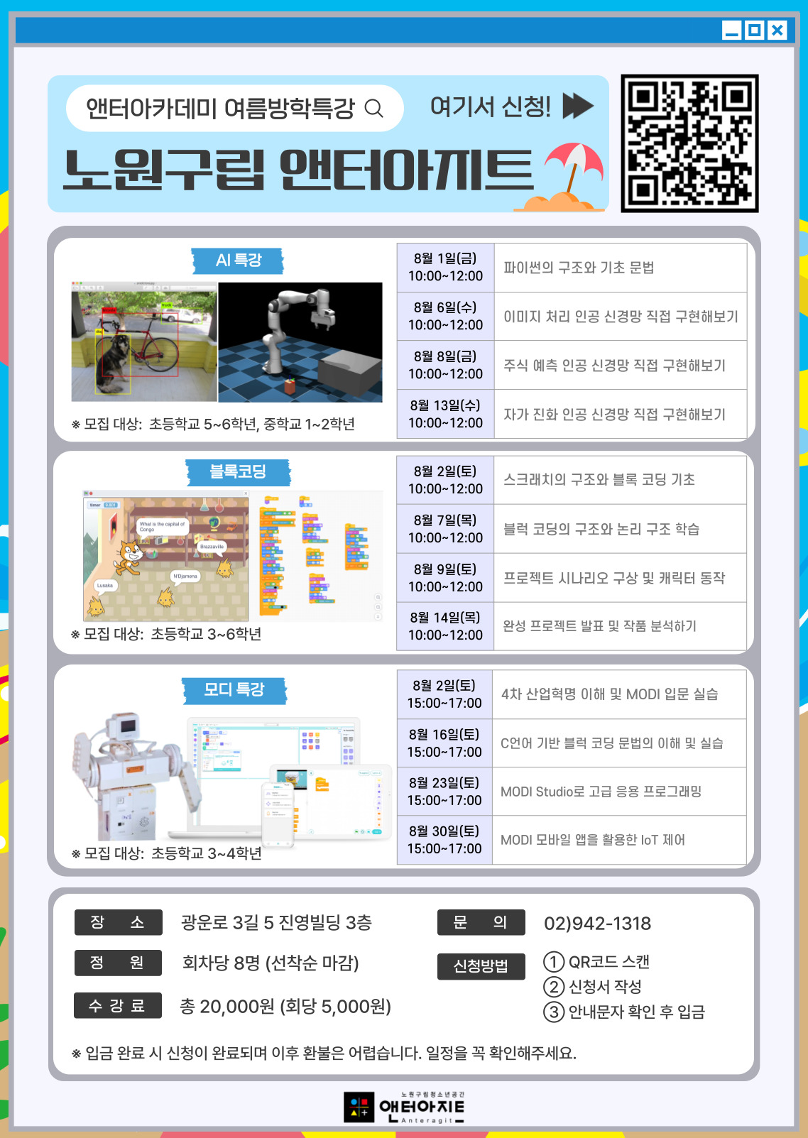 다가오는 여름방학, 노원구립 앤터아지트에서