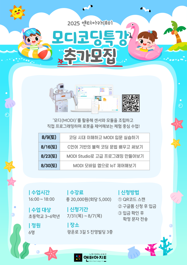 [노원구] [노원구립앤터아지트] 2025 여름방학 MODI 특강 추가모집 안내