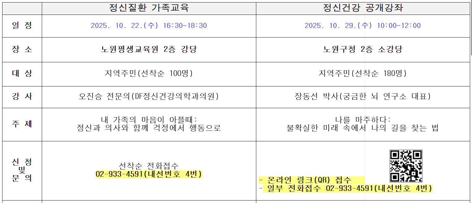 [노원구정신건강복지센터] 2025 정신건강의날 특강