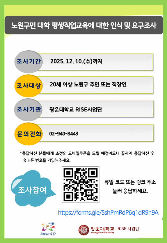 공지[노원구] 노원구민 대학 평생·직업교육에 대한 인식 및 요구조사