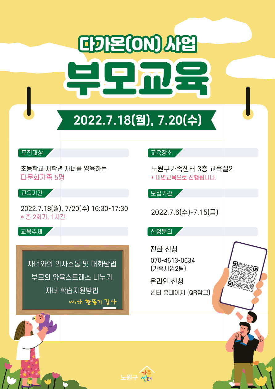 [노원구가족센터] 다가온(On) 사업 부모교육 안내