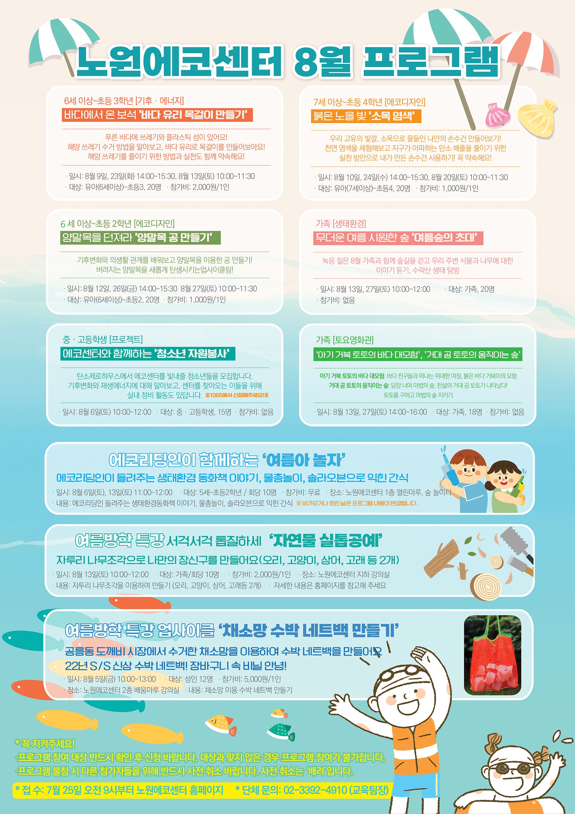 참가신청 7월 25일(월) 9시부터 노원에코센터 홈페이지 선착순 마감