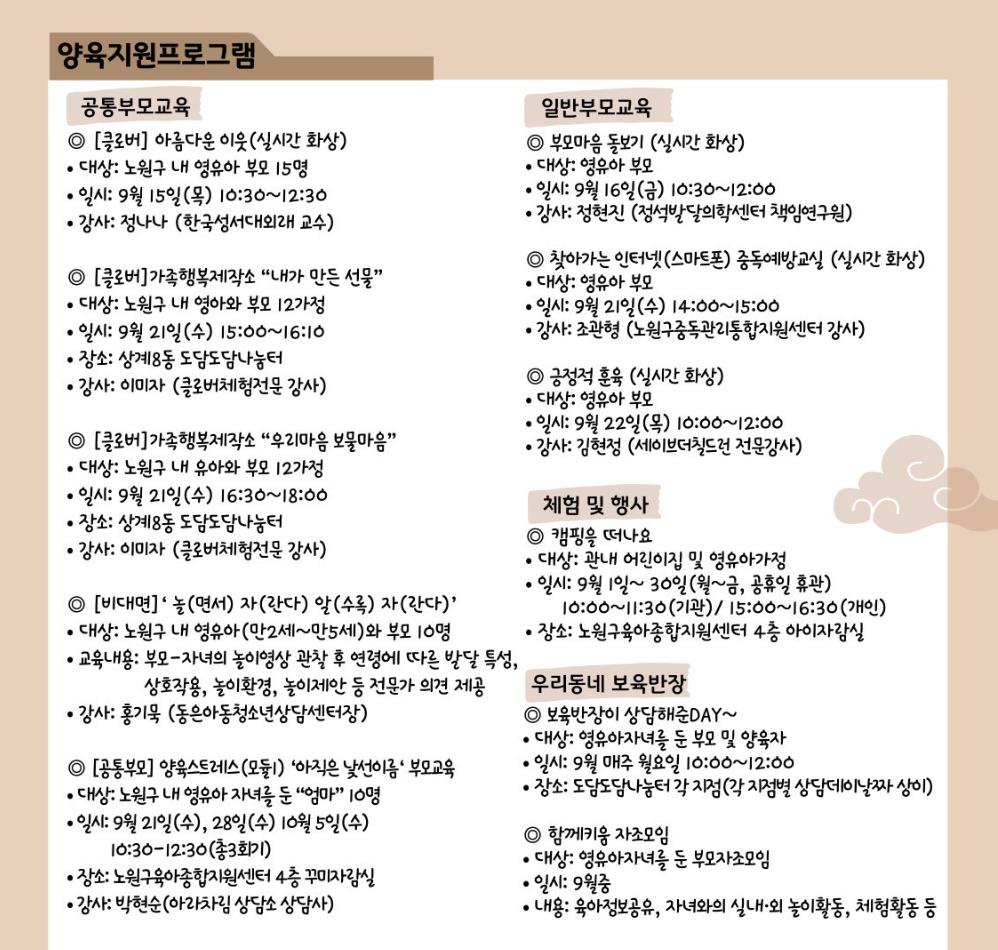 [상계동] 노원구육아종합지원센터 - 2022년 9월 프로그램