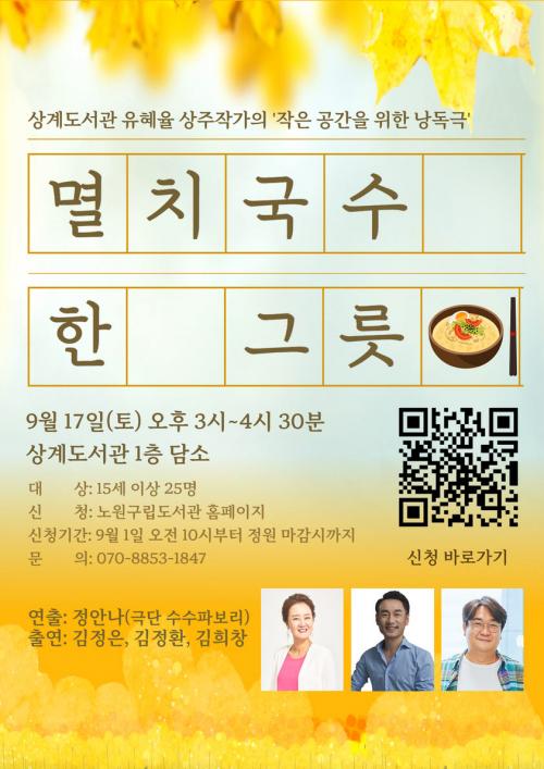 [상계동] 멸치국수 한 그릇 : 작은 공간을 위한 낭독극